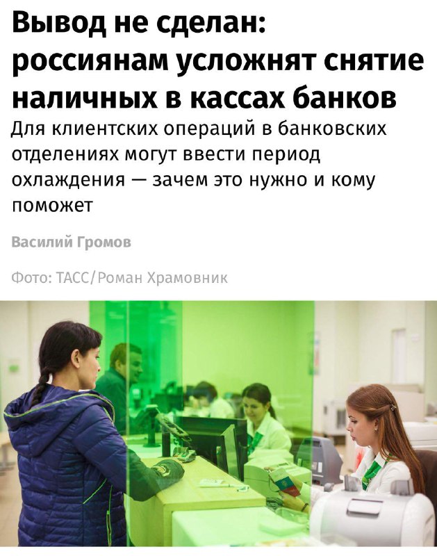 Российские банки предложили ввести «период охлаждения» для выдачи наличных в кассах отделений. Инициатива обсуждалась на Уральском форуме кибербезопасности, ее уже поддержали крупнейшие игроки рынка,