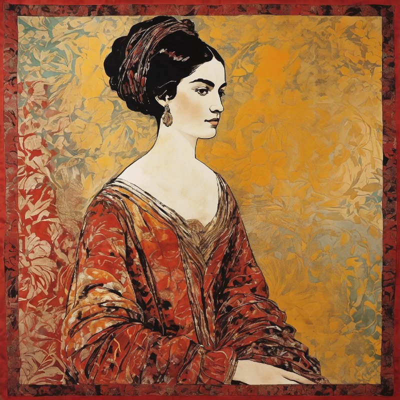 #SDXL #Vanilla 🏛Запрос: noble lady, cy twombly art, denis korobkov art, augustus edwin john art, illustration, artwork batik silk brocade velvet collage complex composition hot batik