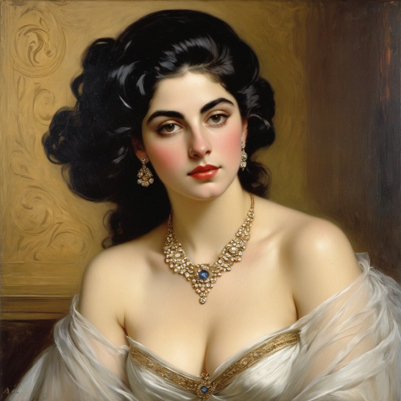 #SDXL #Vanilla 🏛Запрос: Marina Diamandis.A real woman.Mythical young Sicilian beauty with black hair.Goddess of snow-white milky skin.Long Greek nose with hump. voluptuous sumptuos lush natural bust