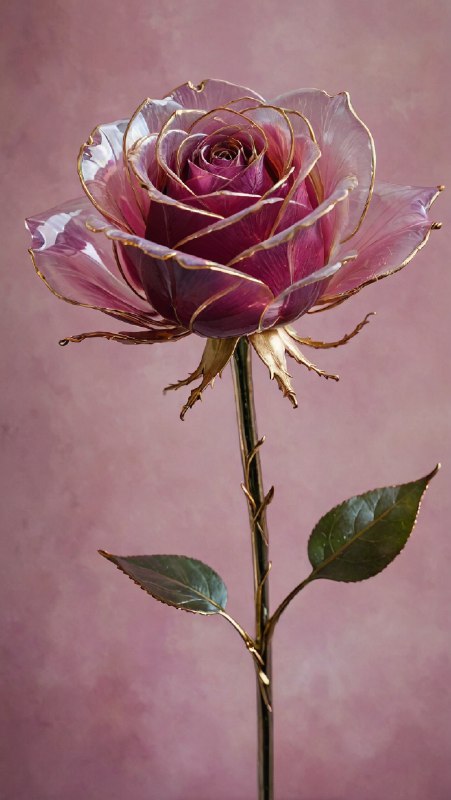#RealVis #OilPainting 🏛Запрос: close-up of a single glass rose in the style of penko gelev, translucent pink glass petals, delicate gold wire stem, intricate details, light refracting through the gl