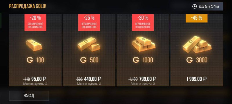 💰 Разработчики запустили акции на покупку Gold! Акция продлится до 18 марта, не пропусти! Будешь покупать? ❤️🔥 - прикуплю 100 голды 👍 - ну на 500 голды хватит 🔥 - гулять так гулять,, беру 1к