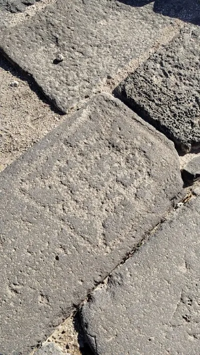 Поля для игры в "Мельницу" высеченные на камнях римской мостовой в городе Сусита (на же Гиппос) на восточном берегу Тивериадского озера. Город был покинут после землетрясения 749 г. н. э. значит поля