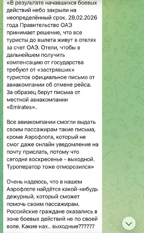📌На заметку Тут кто-то запереживал за свою подписоту в Абу-Даби. Мол Аэрофлот и туроператоры не выдают бумажек об отмене рейсов и наших туристов выселяют из отелей. Неуважаемые соотечественники,