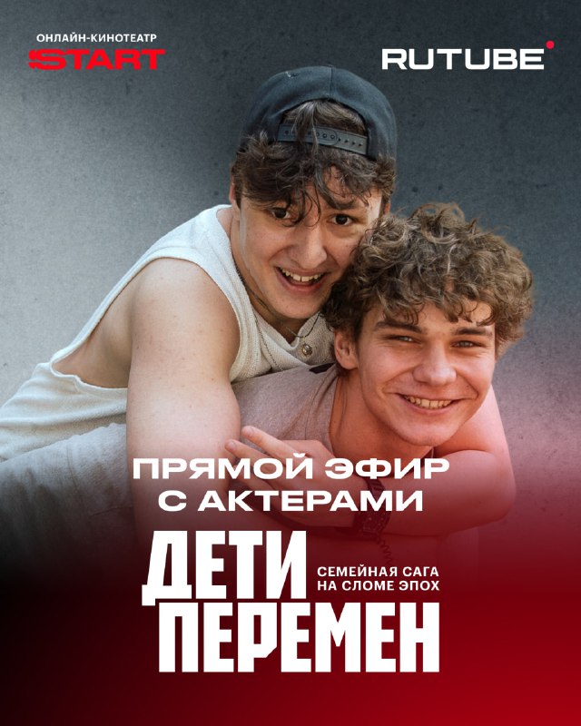 Вам отправлено приглашение на стрим с актерами «Детей перемен» ✉️ Смотрите 1 серию 1 сезона криминальной драмы вместе со Славой Копейкиным и Хетагом Хинчаговым. Завтра в 14:00 мск на Rutube. Модериро