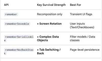 Обзор remember-операторов в Compose #compose #state #remember https://proandroiddev.com/jetpack-compose-state-survival-guide-from-remember-to-remembernavbackstack-f24295710278