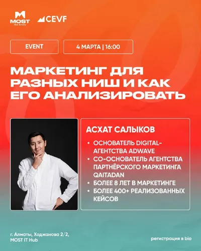 🎁 Митап: "Маркетинг для разных ниш и как его анализировать". MeetUp в MOST IT Hub | 4 марта, 16:00 Встреча для фаундеров, маркетологов, предпринимателей и всех, кто развивает бизнес, на митап о сист