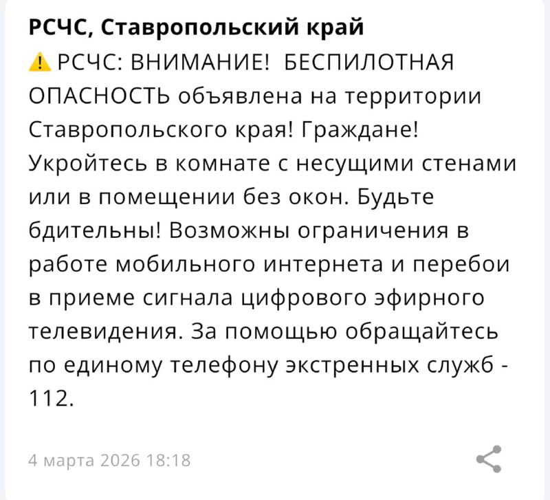 ❗️ Канал оповещений по БПЛА на территории Ставропольского края в онлайн режиме 👇🏻👇🏻👇🏻 https://max.ru/join/ikd9aFYUvD2B7XQcOHAZEPysISLliWSCVrkNjhhrxQA