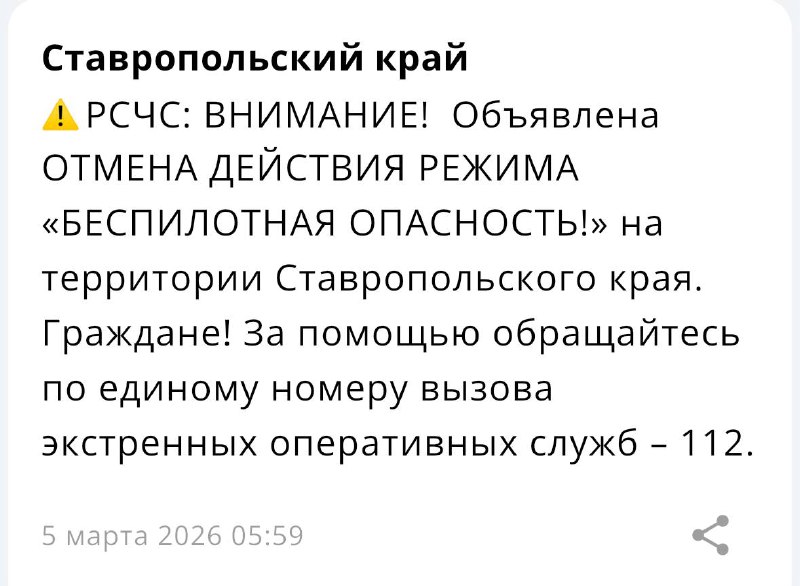 ❗️ На территории Ставропольского края ОТБОЙ БЕСПИЛОТНОЙ ОПАСНОСТИ. Всю информацию по БПЛА публикуем в Max ⬇️⬇️⬇️ https://max.ru/stavropolie_26