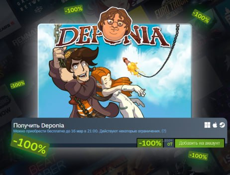 👍 Deponia раздают в Steam Один из лучших в истории: куча головоломок, отличный юмор и Руфус, который пытается выбраться со свалки. У игры 93% положительных отзывов, а ещё она даёт +1 к коллекционке
