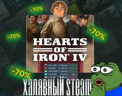😢 Всем фембоям приготовится — Hearts of Iron IV получила скидку7️⃣0️⃣ Легендарная стратегия, в которой мы примем на себя роль правителя одной из стран времен Второй Мировой. Война началась, и наша г