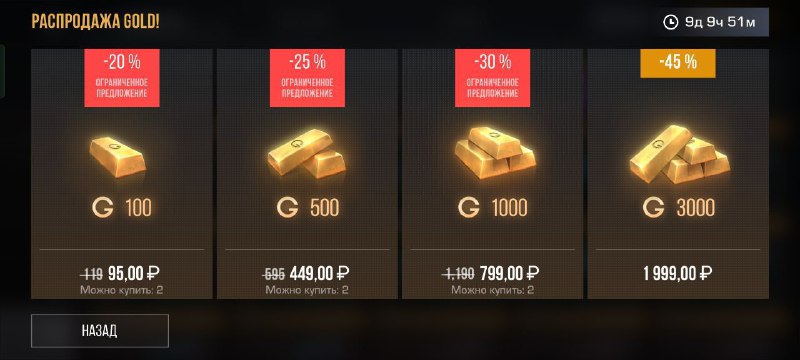 💲 До 18 марта в игре доступны большие скидки на голду!