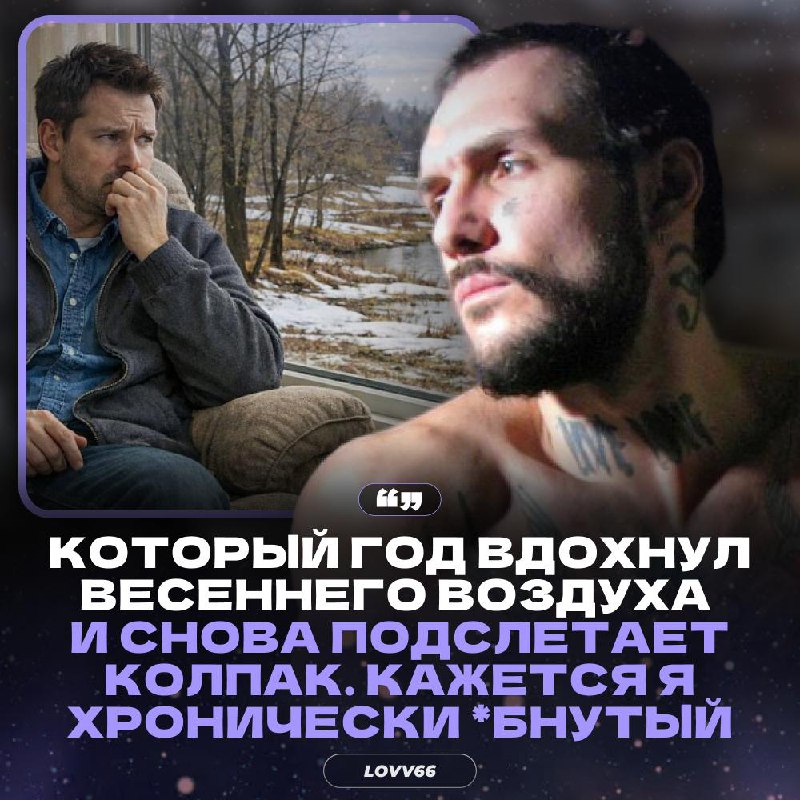 🤡 LOVV66 С ПОДЛЕТЕВШИМ КОЛПАКОМ — ВЕСЕННЕЕ ОБОСТРЕНИЕ! Иван поделился мыслями о своём весеннем состоянии: Который год вдохнул весеннего воздуха И снова подслетает колпак. Кажется, я хронически *бн