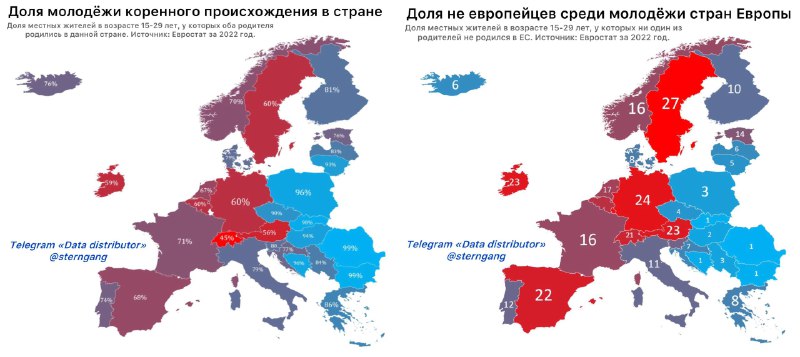Лишь у 60% молодёжи Западной Европы оба родителя относятся к коренному населению страны их рождения Рост доли мигрантов в населении Европы, а также противоречивые экономические и социальные последств