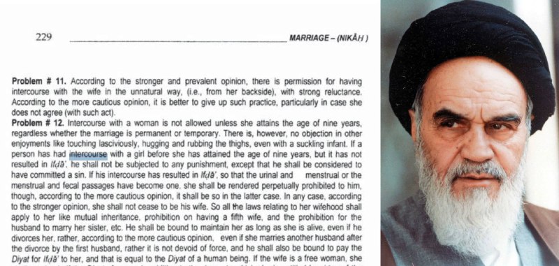 В руководстве по исламскому праву «Тахрир аль-Василах» за авторством аятоллы Рухоллы Хомейни, фактического патриарха нынешней Исламской Республики Иран, регулируются сексуальные отношения с детьми. В