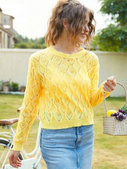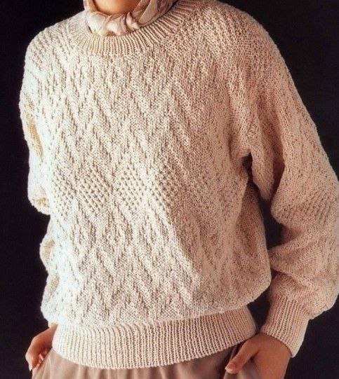 Джемпер с коротким рукавом от корейского бренда Just One Джемпер с рукавом-реглан, связан из объемной пряжи (хлопок или хлопок с акрилом). Узор - простейший, состоит из маленьких жгутов из двух пете