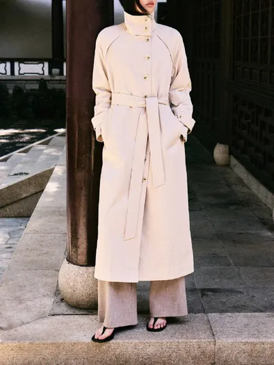 Идеальный тренч на весну 🌸 Сразу несколько трендов в одном образе: • высокий воротник • свободный силуэт • молочный оттенок Строгий, но лёгкий, стильный и комфортный. Просто надеваешь — и весь обра