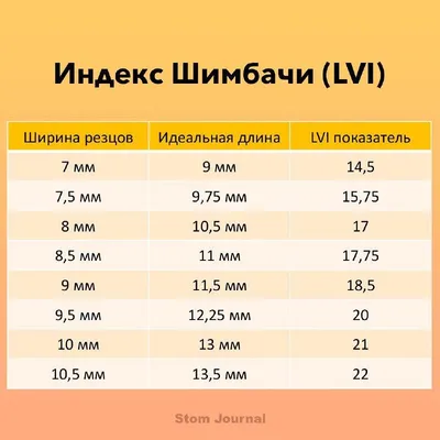Индекс Шимбачи ⠀ Он же LVI - индекс. Это длина линии, проведённой от зенита (самой высокой точки десны) центрального верхнего резца до зенита (самой низкой точки десны) нижнего центрального резца той