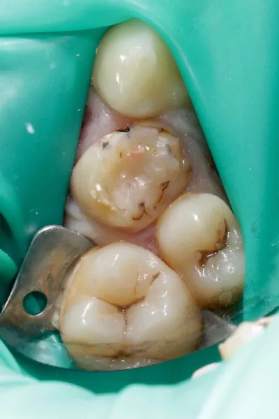 ⚡️КМ убираем по периферии (2 мм от ЭДС должны быть без окрашивания). В глубоких зонах — допустима лёгкая пигментация в виде «дымки» 👉🏻Почему нельзя полностью убирать кариес маркер на дне полости?
