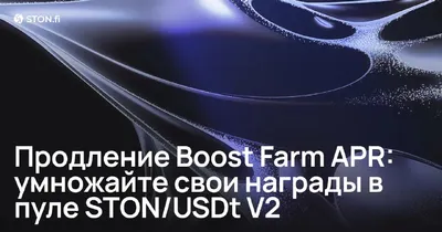 🚀 Продление Boost Farm APR: умножайте свои награды в пуле STON/USDt V2 Стонфаеры! Программа Boost Farm APR продлевается ещё на месяц. Стейкая STON и участвуя в фарминге пула STON/USDt V2, вы получае