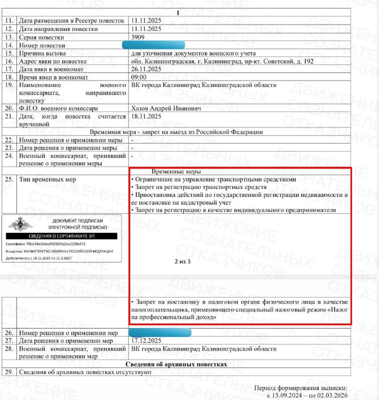 🕊️ Призывник получил запрет на выезд без повестки в военкомат НАСТОЯЩИЙ МАТЕРИАЛ (ИНФОРМАЦИЯ) ПРОИЗВЕДЕН, РАСПРОСТРАНЕН И (ИЛИ) НАПРАВЛЕН ИНОСТРАННЫМ АГЕНТОМ ДВИЖЕНИЕ СОЗНАТЕЛЬНЫХ ОТКАЗЧИКОВ, ЛИБО К