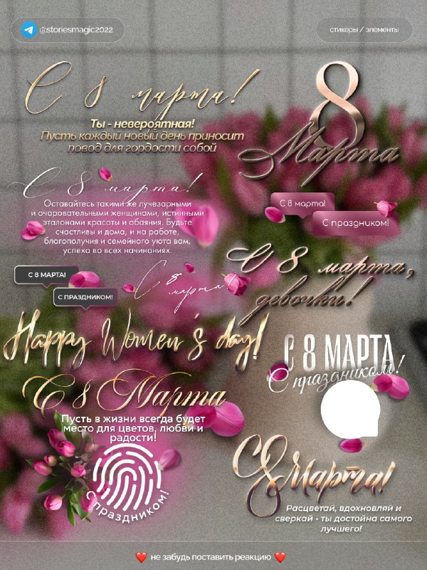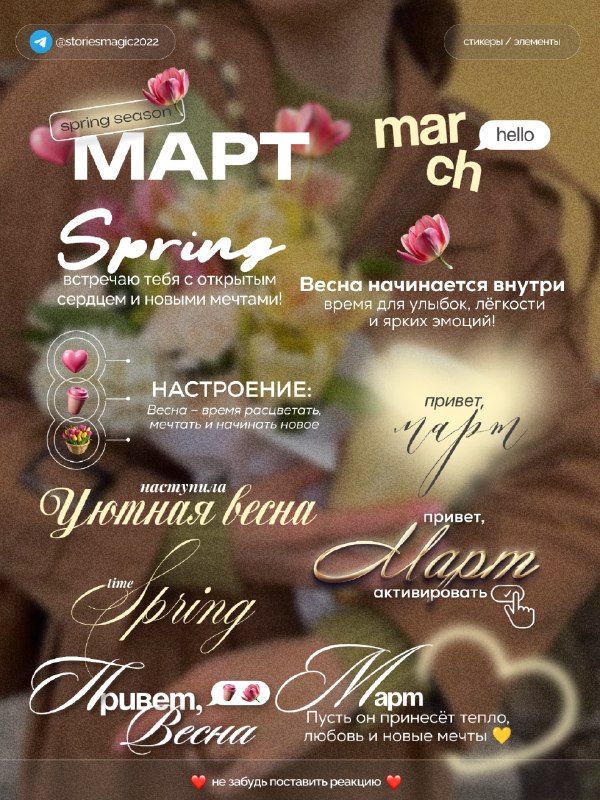 #стикеры #надписи #весна #праздники #8марта © 🐣🐥🪿🦆🐦⬛️ 🦄🫎🦅🦉🐺 🐗🐴🐝🪱🦋 🦋🐌🦂🐢🐍 🦎🦖🦕🐙🦑 С ВАС РЕАКЦИИ, С МЕНЯ СТИКЕРЫ❤️ 🐾Все мои каналы тут 🫏 ещё больше стикеров: @storiesmagic2022
