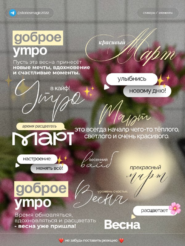 #стикеры #надписи #весна #мотивация © 🐣🐥🪿🦆🐦⬛️ 🦄🫎🦅🦉🐺 🐗🐴🐝🪱🦋 🦋🐌🦂🐢🐍 🦎🦖🦕🐙🦑 С ВАС РЕАКЦИИ, С МЕНЯ СТИКЕРЫ❤️ 🐾Все мои каналы тут 🫏 ещё больше стикеров: @storiesmagic2022