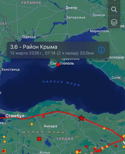 🚨В Чёрном море возле побережья Крыма зафиксировано землетрясение магнитудой 3.6 UPD: 🤷♂️Нам не удалось найти сообщения об ощутимых толчках в Крыму Вероятно, землетрясение не ощущалось на поверхно