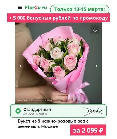 Только сегодня забираем 5 000 бонусов на доставку цветов Flor2u🔥 Для новых пользователей. Плюс бонусов, что они останутся на следующие заказы, ими можно списать 40% от заказа. Заказ можно сделать