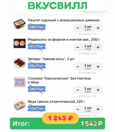 Напоминаем про промокоды на первый заказ во ВкусВилл🔥 Пример выгоды выше👆 Суммируются с акциями магазина. 🎁Промокоды: • СУПЕРВЫГОДА350 — Скидка 350₽ от 2 500₽ • СУПЕРВЫГОДА300 — Скидка 300₽ от 1
