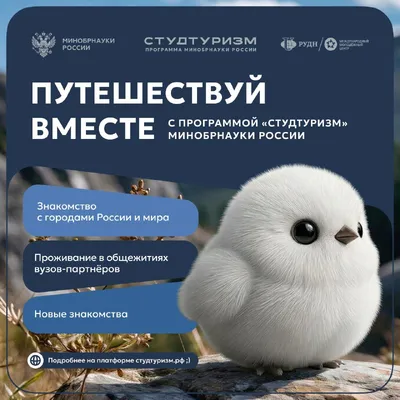 😇 Путешествовать, учиться и открывать новое Программа «Студтуризм» Минобрнауки России — это возможность для студентов, молодых специалистов, учёных и аспирантов от 18 до 35 лет путешествовать, знако