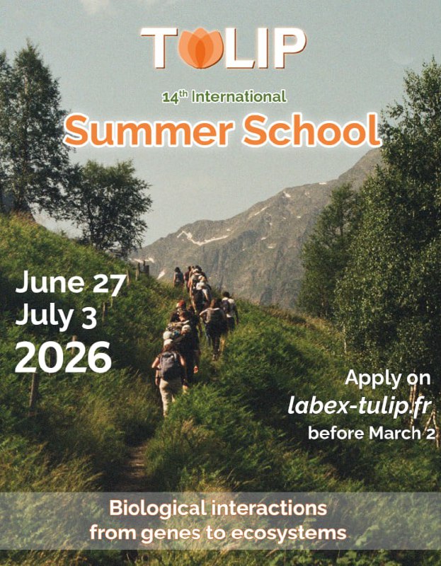 Летняя школа во Франции TULIP Summer School 2026 Тема: "Биологические взаимодействия от генов до экосистем". 📍Где: Французские Пиренеи (Франция) 📅Когда: 27 июня — 3 июля 2026 г. Язык: английский