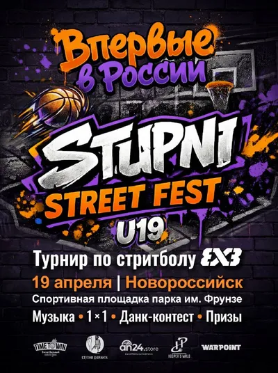 STUPNI STREET FEST — ТУРНИР ПО СТРИТБОЛУ 3x3 Ступни выходят на новый уровень. 19 апреля в Новороссийске пройдет STUPNI STREET FEST — уличный турнир по стритболу среди молодежи до 19 лет. 📍 Место: