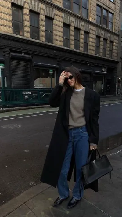 Формула идеального весеннего образа: пальто + джемпер + джинсы + лоферы🪞 Дополняем образ очками (ведь солнце наконец-то радует!) и вместительной сумкой, и классный повседневный лук готов! пальто дж