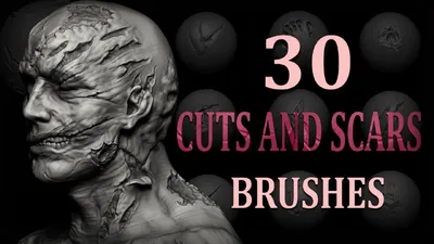 Blender + Zbrush - 30 Cuts and Scars Brushes 30 вырезанных вручную порезов и шрамов Кисти VDM и Alpha. Идеально подходят для создания реалистичных ран на персонажах! 🖼 Подробнее ⬇️ Скачать #alph