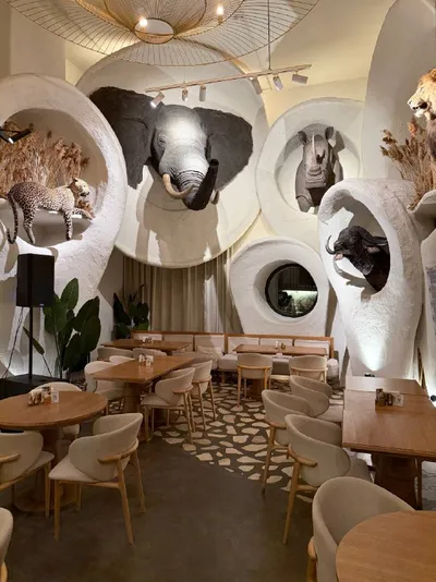 📍Ливингстон На праздниках посетили уникальный ресторан-путешествие 🐆 Меню объединяет кухни Африки и Ближнего Востока . Но мы пробовали более привычные блюда : • пряные огурцы • батат фри • индий