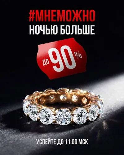 До 18 марта 11:00 мск на весь ассортимент действует дополнительная скидка до -90% по промокоду НОЧЬ. Успейте порадовать себя новым украшением и помните, что ночью можно позволить себе больше 👈 Подр
