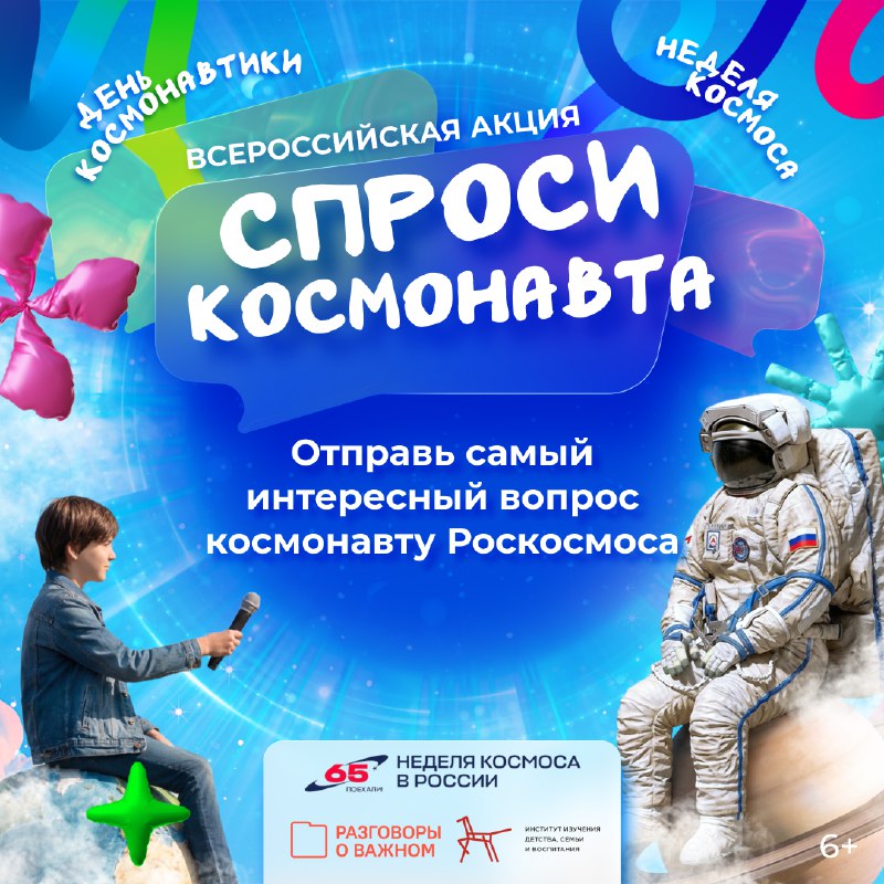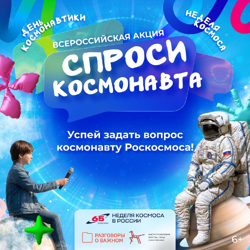 Задай вопрос космонавту Роскосмоса 🧑🚀 Неделя Космоса в России стремительно приближается! В честь такого важного события телеканал СОЛНЦЕ совместно с проектом #РазговорыоВажном объявляет конкурс «С