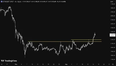 ETH пробивает ключевую зону сопротивления. На 4‑часовом графике ETH мы видим, что цена уверенно вышла выше желтых уровней, которые держали её долгое время. Рынок подтвердил, что сила покупателей пере