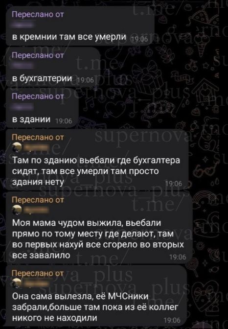 Брянск. Поступают сообщения о многочисленных жертвах. Одна из ракет попала в главное административное здание, где в тот момент находились сотрудники. Также зафиксировано попадание в производственные ц