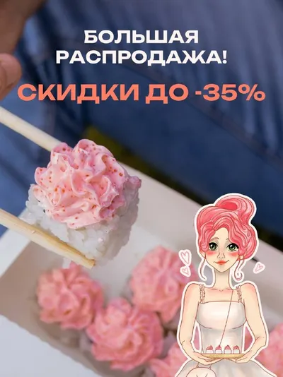 БОЛЬШАЯ РАСПРОДАЖА В СУШИ РЫБЕ 🥰 Скидка до 35% на роллы в специальном разделе «Промо до -35%», уникальная возможность заказать любимые блюда по выгодным ценам 🍸 ➖3️⃣5️⃣🔤 🥢Цезарь ролл за 265₽, вме