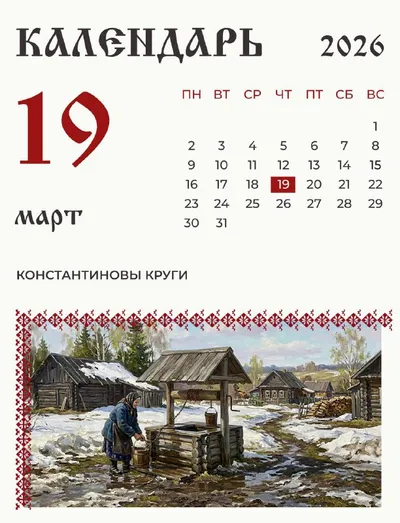 По народному календарю 19 марта (6 марта по старому стилю) отмечался Константинов день, или Константиновы круги. 🏠На Руси в этот день считалось необходимым вытоптать снег вокруг колодцев, чтобы в ни