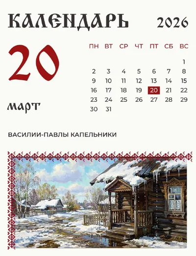 20 марта (7 марта по старому стилю) по народному календарю Василии-Павлы Капельники. На Руси считалось, что с Павла «весна шибче идёт». Впрочем, холод ещё чувствовался: «С крыш капает, а за нос цапае