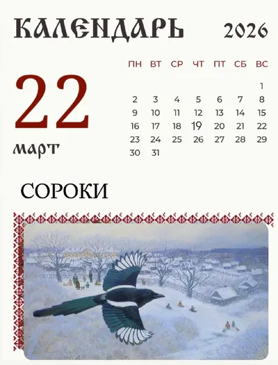 На 22 марта (9 марта по старому стилю) в народном календаре приходятся Сороки'. Так в простонародье прозвали память сорок севастийских мучеников. В старину этот 🌞день считался днём второй встречи ве