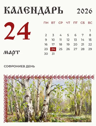По народному календарю 24 марта (11 марта по старому стилю) Софрониев день. На ❤️уси считалось, что именно в этот день начиналось движение сока в берёзах. К этому времени 🐦⬛прилетали зяблики, чиб