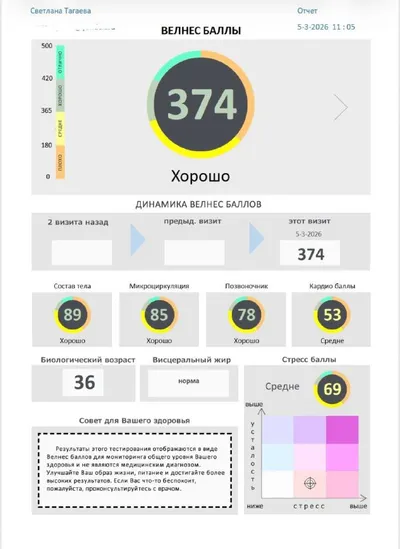 Про исследование тела в санатории ✨ По сути это аппарат по типу биоимпеданс, но в более современной версии. Добавила выдержку (не все) своих результатов, из которых узнала: • Стресс несильный, но е