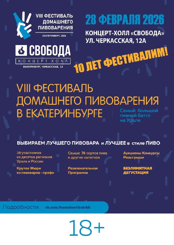 Сегодня у нас VIII Фестиваль Домашнего Пива! Самое масштабное сражение домашних пивоваров на Урале! Выбираем лучшее пиво и лучшего пивовара из 3 десятков со всей России! Билеты: vk.cc/cRspWL