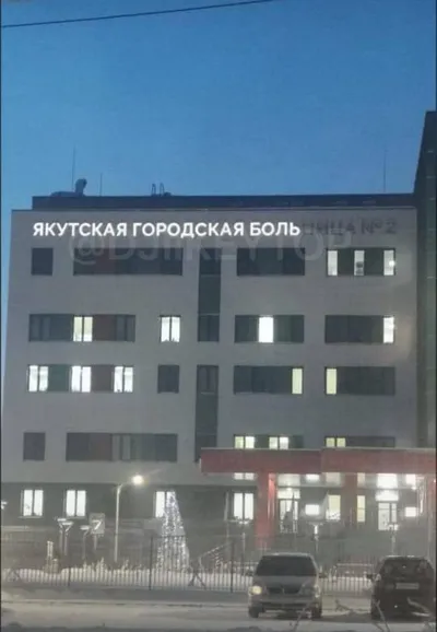 Некоторые буквы на фасаде Якутской городской больницы №2 не выдержали холода и погасли Панельки