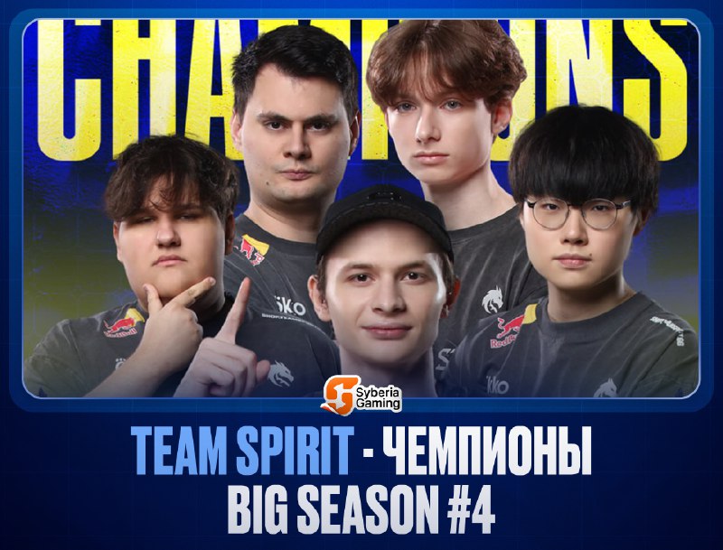 🥰 Team Spirit снова чемпионы! 💥 Гранд-финал BIG SEASON #4 завершился победой Team Spirit! Драконы обыграли Verso Time со счётом 3:2. Общее распределение мест и призовых следующее: 1 место - 🐉 Tea