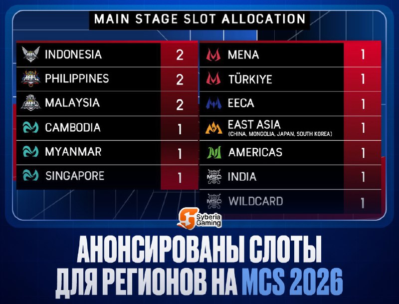 🥸 Квоты на EWC распределены! 🤩 Как и в прошлом году, в рамках Esports World Championship пройдёт сразу два ивента по MLBB - Mid Season Cup 2026 и MLBB Woman's Invitational 2026. Сегодня стало извес