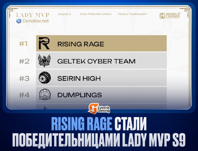 😳 Rising Rage попадают в ЗК МСС! 🏆 Девушки стали трёхкратными победительницами Lady MVP, одолев в гранд-финале Geltek Cyber Team, бывших Asaemon. За победу команда получает слот на Закрытые Квалифи